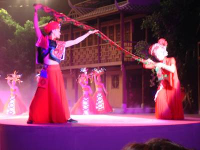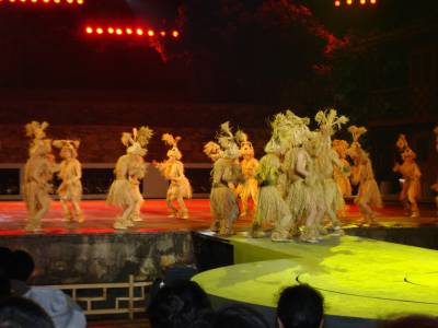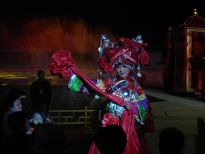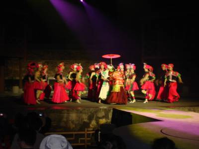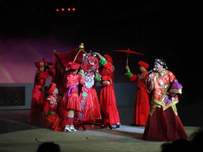 利川腾龙洞《夷水丽川》原《夷水丽川》共投资1200多万元,节目包括序曲《焚香祭祖》、上篇《白虎雄风》、中篇《巴裔风情》、下篇《龙船古韵》、尾声《鼓鸣舍巴》等五篇共17个节目,演出时间约50分钟。通过舞蹈、对唱配合解说等多种形式,展示了肉连响、哭嫁、女儿会、六口茶等经典土家文化。展示土家族先民在大迁徙过程中艰辛的历程、与大自然搏斗的精神和奋斗史,以及土家族的风土人情。邹开建摄通联:汉川市麻河镇党政办公室电话:13197382491