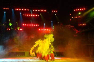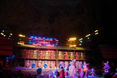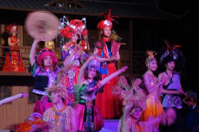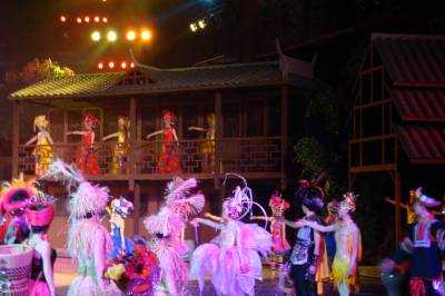 腾龙洞的民俗节目表演恩施利川腾龙洞的民俗节目表演,有《白虎雄风》、《巴裔风情》、龙船古韵》、尾声《鼓鸣舍巴》……这些民俗节目虽然不是由最有名的民间艺术大师表演,但是也聊胜于无。通过舞蹈、对唱配合解说等多种形式,展示土家族先民在大迁徙过程中艰辛的历程、与大自然搏斗的精神和奋斗史,以及土家族的风土人情。邹开建摄通联:汉川市麻河镇党政办公室电话:13197382491