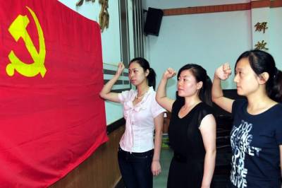 7月23日,湖北省郧县移民局3名年轻女干部庄严的举起右手向鲜红的党旗宣誓,正式加入中国共产党。郧县是南水北调中线工程核心水源区,今年将有30264名移民外迁,在外迁移民工作中她们发扬吃若耐劳精神,成为移民搬迁工作中的一支攻坚力量,她们从19名入党积极分子中脱颖而出被批准加入党组织。(视界网签约摄影师周家山摄摄影报道)