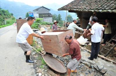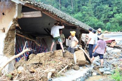 2010年07月23日晚,位于三峡库区的湖北宜昌市夷陵区太平溪镇遭受特大暴雨袭击,导致山洪暴发,24日14时已知1人死亡、5人失踪。当日晚,该镇长岭村、古村坪村、小溪口村、韩家湾村、太平溪村、美人沱村遭受了罕见的特大暴风雨的袭击,降雨量达到200毫米以上,并伴有大风,导致特大山洪暴发,造成大量民房受损、倒塌,多处交通中断,农田冲毁严重,并有人畜伤亡,损失严重。目前,灾情正在进一步核实中。本报视界网张国荣摄