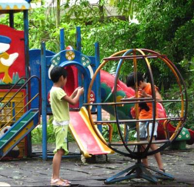 暑假到了,除了在家里写作业,小区的游乐场是孩子们最喜欢的地方。