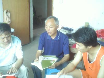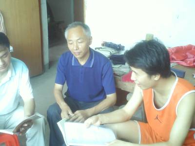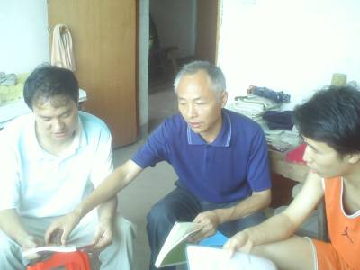 暑期,一些已毕业多年的学生回母校蕲春四中看望被誉为”大别山师魂”的汪金权老师,与汪老师一起学习交流。图为25日汪老师在和回校学生在一起。(操砺摄)