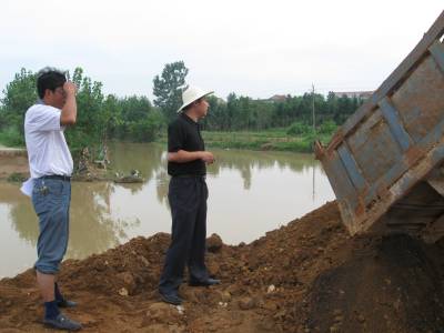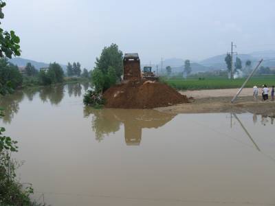 武穴水毁设施恢复重建忙7月26日,武穴市北部山区余川镇党委、政府投资20余万元组织机械和车辆运土筑坝,恢复加固该镇余川村水毁河堤。7月初以来,武穴全市因洪涝灾害损坏大小水利设施2735处。从7月21日开始,武穴防汛抗灾工作重点由前期的集中抗洪调整为抗洪救灾相结合,实行一手抓防汛抗灾,一手抓恢复重建,加大投入力度,加快修复损毁的堤坝、渠道、涵洞、桥梁、道路,确保农业抗灾自救顺利进行,确保全年农业发展目标规划顺利实现。(本报视界网郭占军通讯员文建华摄)