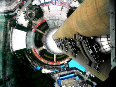 东方明珠259米悬空观光廊脚下的俯瞰景象。