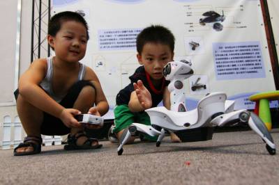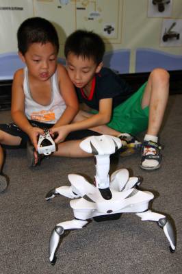 2010年7月26日,湖北省襄樊市,由中国科技馆全国巡展提供的家政安全机器人、排爆机器人、多足机器人、双足行走机器人、走迷宫机器人、聊天机器人等科普产品在襄樊科技馆展出以来,吸引了众多市民特别是小朋友们的喜爱。