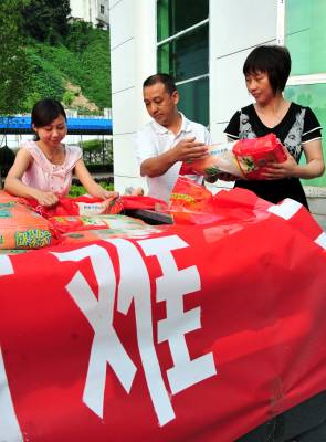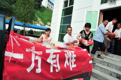 2010年7月23日23时30分左右,湖北省宜昌市夷陵区太平溪镇因特大暴雨袭击导致山洪发生。该镇受灾地区之一的小溪口村女婿望运平和妻子李文菊得知灾情后,26日将1吨大米送到了灾区,表达他们的一份爱心。连日来,宜昌萧氏茶业等企业及社会各界也纷纷为太平溪镇灾区捐款捐物,帮助灾民抗灾自救。本报视界网张国荣摄
