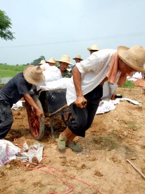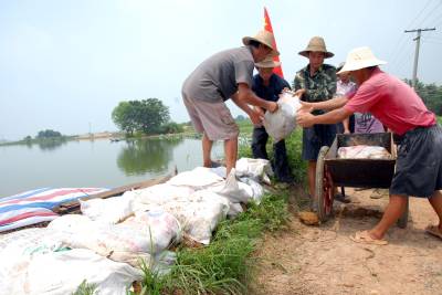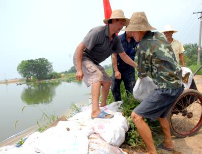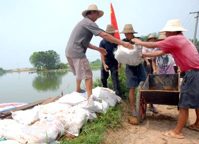 7月26日,嘉鱼县西湖围堤渡普王家庄段,干部群众顶着烈日加筑子堤。据了解,西湖围堤全长47.4公里,近10天来水位在23.4米居高不下,超过警戒水位0.6米。4000余名干部群众日夜值守,加固整险。根据气象预报,未来三天将有持续强降雨,围堤形势不容乐观。县防汛抗旱指挥部紧急调配物资和加派劳力,修筑宽0.8米,高0.5-1米,长30公里的子堤,确保西湖围堤安全度汛。视界网签约摄影师夏正锋摄