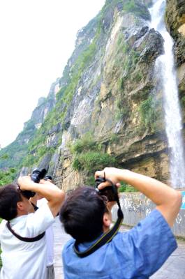 清江画廊吸引众多摄影爱好者7月26日,恩施市红土乡摄影爱好者正在拍摄清江画廊中马尾沟天然瀑布景点。据悉,为了宣传旅游景区,恩施清江画廊峻峭的山、秀丽的水,吸引了众多摄影家和摄影爱好者前来采风。他们冒着酷暑,拍摄了耐人寻味的风光作品,从不同角度和视觉真实地反映了摄影人眼中美丽的清江画廊。(视界网彭绍峰摄)红土乡政府13329820218