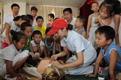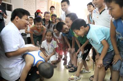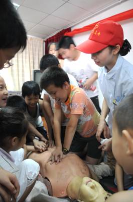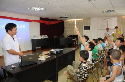 医院社区联手为农民工子女打造”平安暑期”7月26日,宜昌市中心人民医院急诊科医生汤兴华张家店社区为居住在这里的农民工子女讲解溺水抢救技术。进入暑假,城市农民工由于工作忙碌,无暇照顾放假在家的孩子,存在很大的安全隐患。宜昌市中心人民医院团委组织青年志愿者在所辖社区内开展”关爱农民工子女、共建平安暑假”为主要内容的服务活动,为各个社区的农民工子女讲解溺水、烫伤、雷击触电等夏季高发的意外伤害的预防和急救处理知识,并赠送社区阅览室儿童图书,和社区共同联手,为农民工子女打造”平安暑期”。