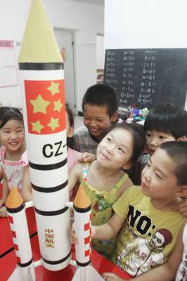 暑假期间,荆门市东宝区泉口社区居民叶思玉组织辖区10余名留守儿童举办”探索奥秘,接触科学”科普夏令营活动,她指导留守儿童利用废旧塑料、泡沫等废品制作火箭、载人飞船等航天模型,以此培养留守儿童的动手操作能力,激发他们学习航天知识的兴趣,丰富暑假生活。(本报视界网宁新生摄)