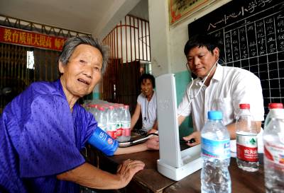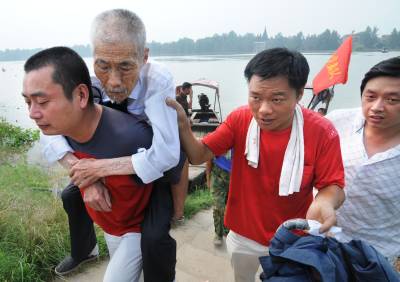 紧急转移洪水围困乡亲昨日,汉川市马口镇干部将81岁老人黄少峰转移到安全地带(图1)。金河村被汉江洪水围困,为迎接汉江特大洪峰的到来,全村600多村民全部安全转移。图2:被转移到学校的村民开心聊天。图3:医务人员为转移的村民检查身体。(记者曲河摄)