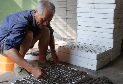 7月27日,嘉鱼县牌洲湾镇庄屋村67岁的老汉石顺山正在自家进行包菜育苗,准备在自家4亩被淹的玉米地里全部该种包菜,进行生产自救。与周边农户在农田制作营养钵进行有土育苗不同,他在室内用苗盘育苗,发芽后可放在水上培育,引进荆州水培育苗技术进行培育,不仅发芽成活率达95%,还大大减轻有土育苗的体力消耗。视界网签约摄影师汪姝琴