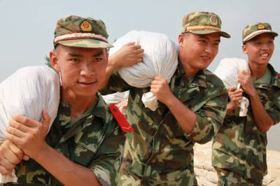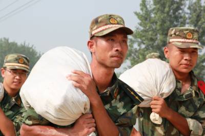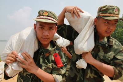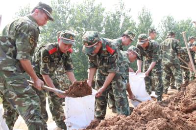 > 武警湖北总队一支队官兵抢筑子堤保民平安