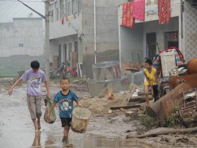 7月27日,郧县刘洞镇九年一贯制学校的张鹏、黄蕾蕾等同学在帮家里清洗从淤泥中扒出的物品,这是孩子们自本月24日以来每天需要完成的长达近10小时的”暑假作业”。24日该县遭遇持续近9个小时的强降雨袭击,全县在洪灾中倒塌民房1195户3271间,损坏民房2143户6929间,受灾群众20万人,灾难让孩子们正经历着艰难的暑假生活。(郧县刘洞镇九年一贯制学校高超摄邮编442525)