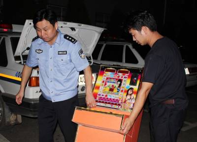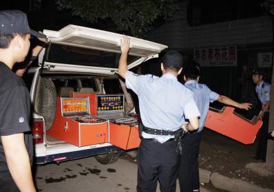 7月27日晚,孝昌巡逻大队民警接群众举报,该县老城区一电玩城暗藏赌博机。当晚22时30分许,该县巡逻大队民警来到该电玩城,依法收缴了三台老虎机。宋俊初段玲摄