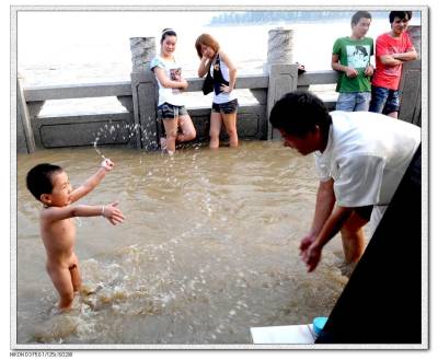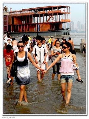 童汉芳于2010.7.27.摄当长江洪流逼近江汉关警水位后,汉江洪流通过龙王庙时