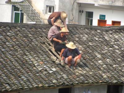 抢修房屋防大汛(通讯员:柯常武单位:十堰市郧县安阳镇政府邮编:442515电话:15571900508)7月28日下午,安阳镇西堰村的村民正在抢修房屋,积极防范暴雨侵害侵害。7月份以来,安阳镇先后遭遇了4轮强降雨,致使544间房屋倒塌、406间房屋成为危房,294户1074名群众因房屋受灾被转移安置。安阳镇政府号召灾民发扬艰苦奋斗,自力更生的精神,不等不靠,积极行动起来,抗灾自求,增强对大汛的防范能力。