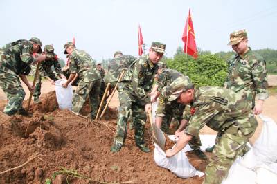 武警湖北总队一支队官兵填装土袋保洪峰安然过境29日,汉江将迎来新一轮洪峰,汉川堤坝将遭受1998年以来最高水位的考验。28日,担负汉川市马鞍乡新横堤险段抢险救灾任务的400余名官兵冒高温斗酷暑,经过连续5个多小时的战斗,填装土袋八万袋对险段进行加固,为保证洪峰安然过境做好充分准备。冯力雯杨德华15971434320