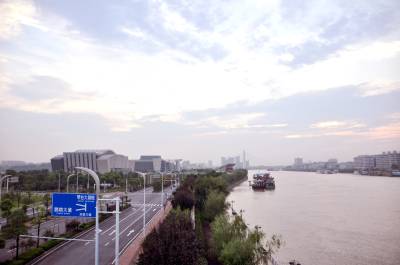 连日来,长江汉江洪峰不断夹击武汉,汉江的水面涨与琴台大剧院旁的知音大道持平,成为一道亮丽的风景线。