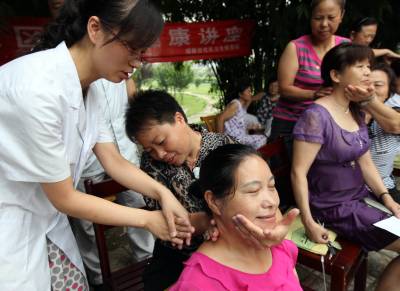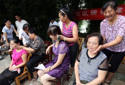 7月29日,襄樊市襄城区擂鼓台社区居委会请来该市职业技术学院专家,手把手的教社区居民颈椎病保健操、肩周保健、合谷穴按摩等家庭自我养生按摩保健知识,提高中老年人的自我保健意识和能力。