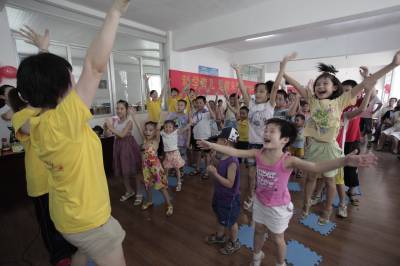”假日妈妈”在行动7月29日,”假日妈妈”和留守儿童一起玩游戏。当日,宜昌市西陵区妇联的”假日妈妈”们来到乌龟碑社区,和这里的50多名留守儿童度过快乐时光。据了解,组建的妈妈队伍有做医生的健康妈妈,政法工作者担任的法律妈妈,教师担任的教育妈妈,这些妈妈分别对孩子们进行学业辅导、文明礼仪、安全健康等方面的指导,让暑期未成年人度过一个充实而有意义的假日。本报视界网黄翔摄