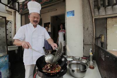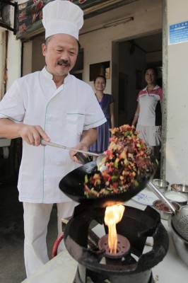 退伍军人成大厨7月28日,厨师汪道福正在为顾客烧拿手菜。宜昌市西陵街办铁路坝社区54岁的汪师傅是一名退伍军人,曾参加过对越自卫反击战。他退伍后认真学习厨艺,2006年在宜昌城区街头开了一家餐馆,凭借一手好菜,生意越来越红火。本报视界网黄翔摄
