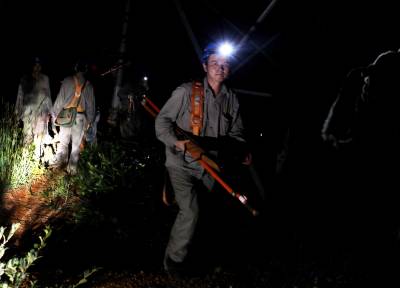 > 输电线路遭雷击 电力员工连夜抢修