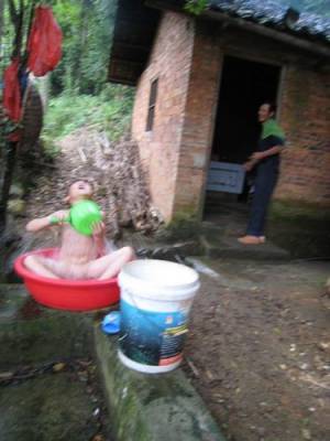 这几天,气温越来越高。就在许多人都在想着怎样清凉时,一位孩童却找到了自己的消暑好办法,使人看了仿佛回到了快乐的童年。(本报视界网徐大发摄)