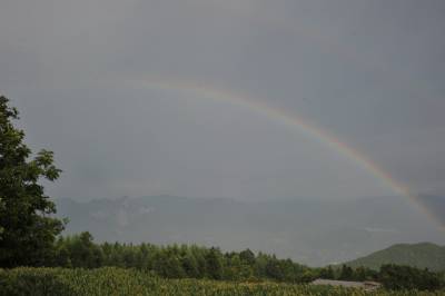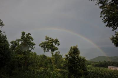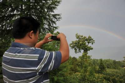 建始官店惊现”双虹拱照”7月28日,建始县官店镇竹园坝村一场阳光雨后,东南方向出现双彩虹,持续了10多分钟。当天下午时雨时睛,下午5时左右,一阵突降暴雨,并伴有冰雹和大风后,天空中出现了一道较清晰的彩虹,过了几分钟,在这道彩虹上方又慢慢出现了第二道彩虹,这一道颜色较淡。当地许多村民都表示没见过”双虹拱照”的景观。本报视界网刘波建始县新闻中心刘波联系电话13032794298