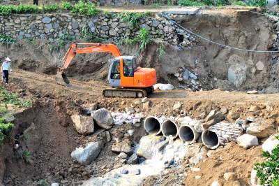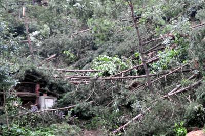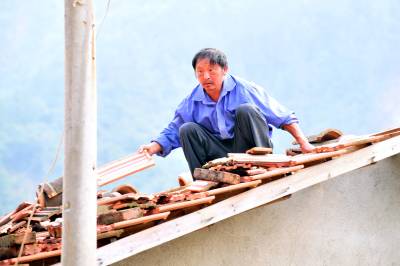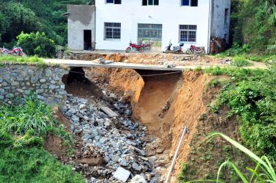 湖北省宜昌市夷陵区太平溪镇2010年7月23日晚遭受特大暴雨袭击,导致山洪发生,造成倒房351户,1.2万多人受灾,直接经济损失1.2亿元的灾害后,28日傍晚该镇古村坪、韩家湾两村再次遭受暴雨、冰雹、大风三重袭击,暴雨形成的山洪造成宜(昌)大(老岭)路及3条村级公路多处路段发生塌方,部分受7月23日暴雨袭击形成的危房倒塌。灾情发生后,当地政府迅速组织人员,对房屋进水和农房屋顶被掀翻的300多名村民进行安全转移,开展抗灾自救。本报视界网张国荣摄