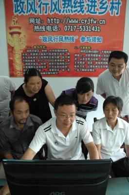 为提高政风行风热线的群众参与率,方便基层群众更快捷的反映诉求,今年,湖北省长阳土家族自治县在村级设立了154个”政风行风热线”服务点,统一配齐电脑上网等设备,各村明确一名纠风联络员,如今基层群众随时可以到村委会免费上网评政风行风。截止7月底,该县”政风行风热线”已受理基层群众咨询投诉840余件,办结率98%,及时为基层解决水电路等涉及切身利益问题368件。(通讯员杜强)