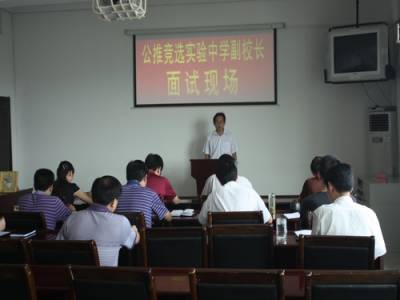 7月29日下午,郧县公推竞选实验中学副校长面试工作在该县教育局六楼会议室举行。据悉,该县在7—8月份进行的学校人事制度改革中,对县实验中学3名副校长职位实行了公推竞选。竞选中”重实绩、重公认”,县教育局制定了科学的公推公选方案,对报名资格、推选程序予以明确。经各学校民主推荐产生24名入围对象,通过公开推荐环节,以无记名投票的方式产生15名公选对象。经过面试6名教师脱颖而出,最后,对这6位同志的德、能、勤、绩、廉进行组织考察,根据面试得分和考察情况研究决定3名任职人选,并予以公示。此次该县公推竞选实验中学副校长,是该县委组织部、该县教育局坚持任人唯贤、唯才是用的重要举措,更是改革创新教育系统选人用人机制,深入贯彻《干部选拔任用工作四项监督制度》,增强干部选拔任用公信力和透明度的重要实践,也是深入贯彻落实全国教育工作会议精神,加强该县教师队伍建设和校长队伍建设的重要实践