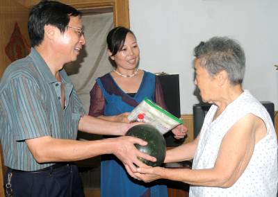 社区慰问老军属7月30日,黄石市东风路社区干部带着西瓜、米粉丝等慰问品看望老军属黄水姑。黄水姑今年80岁,儿子入伍20多年了,至今还没有转业。她以前住在东风路社区,东风路拆迁后她租住在黄思湾。东风路社区干部经过多方打听才找到黄水姑老人,”八一”建军节之际,赶到她家慰问,令老人感动不已。黄石市黄石日报摄影部邱孝威摄