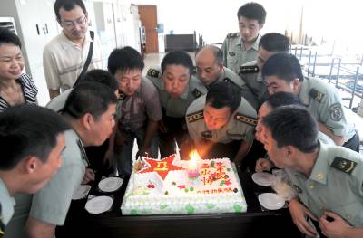 军人的生日7月31日,黄石市大姆子蛋糕店特制了一块”八一”蛋糕,送给湖北陆军预备役黄石高炮三团的官兵,祝他们建军节快乐。黄石高炮三团于2005年成立,今年已有五个年头。黄石市黄石日报摄影部邱孝威摄电话:13807232603邮编:435002