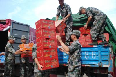 民企情系抗洪子弟兵7月30日,汉川市抗洪部队官兵在搬运湖北铜锣湾国际广场投资有限公司送来的慰问品。该公司建军节前筹集价值近15万元的物质前往汉川防汛前线,慰问在此防汛抢险的驻鄂舟桥旅、湖北预备役高炮师、空降兵某部等1700名官兵,表达企业对子弟兵的感激之情。(本报视界网熊国春摄)