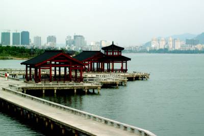 从这幅照片就可以看出黄石不愧是山水园林城市,它依长江而建,城抱磁湖,湖中有山,有岛,柳树环湖,苍松盖山,风景如画,是典型的宜居城市,今年,黄石以开展国际矿业文化旅游节和建市60周年为契机,大力实施”洁、绿、亮、美”工程,使城市面貌焕然一新。