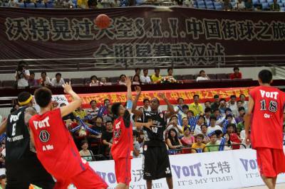 2010年7月31日,湖北,美国著名街头篮球团体—S.K.Y街头篮球队领衔的”沃特晃过天空S.K.Y中国街球之旅”登陆武汉,与来自中国各地的12位顶尖街球好手在华科大光谷体育馆进行一场中美”街头篮球巅峰对决”,虽然中国球队落败,但江城球迷亲眼欣赏到世界一流街头篮球好手的独门绝技。此次来汉的美国S.K.Y街头篮球队由Mr.720、A.O、PatDaRock、EasyJumper等八位世界知名街球大师组成,他们不仅在美国家喻户晓,在中国也拥有大量粉丝,不少中国街球高手都是看着他们的视频成长起来的,其中Mr.720、A.O.以及Spyda更是号称街球界的”三巨头”,A.O以出神入化的控球和神出鬼没的传球著称,Spyda的倒挂金钩扣篮是街球界独一无二的标志性动作,Mr.720更是全世界第一位完成空中转身720度扣篮的街球运动员。