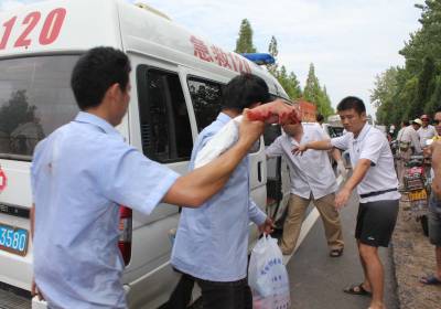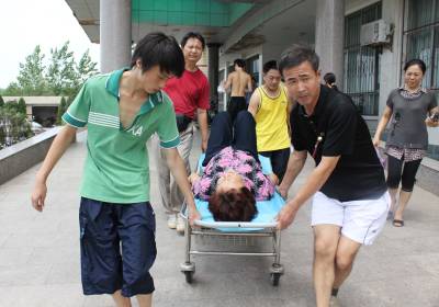 8月1日上午,107国道孝昌县花园镇晏河村路段万花园交叉口,一辆武汉中巴客车为避突然拐弯的奇瑞轿车,冲下路基后侧翻,车上有25人,23名乘客及司机和售票员不同程度受伤,其中2名乘客伤势较重。上午10时30分许,记者赶到事故现场,见一名被变形车厢夹住手背的男乘客刚刚脱困,被扶到120救护车上。记者在现场看到,车牌为鄂A68031的客车侧翻在107国道1148KM+900M东侧路基下,前挡风玻璃着地部分及两侧的车窗玻璃破碎,车内的货架上有受伤乘客手扶留下的血迹、下面有矿泉水瓶、纸箱、塑料袋、玻璃碴四散,一片狼藉。107国道东边,一辆车头严重变形,车牌为鄂K88201红色的奇瑞QQ头北尾南停在路边。据客车司机刘文华回忆,上午10时15分许,他正驾车沿107国道由南往北行驶,突然一辆对向行驶的红色奇瑞QQ车突然往万花园方向岔路左拐,他为避让向右打方向盘,客车往前冲了近50米,与奇瑞QQ相撞后,侧翻在路基下。据该车售票员叶忠义介绍,客车侧翻后,车厢内左侧的乘客全部叠压到车厢右侧,逃都没地方逃,他和司机刘文华从驾驶室着地部分的挡风玻璃破洞钻出来后,就迅速组织自救。叶忠义找到一根木棍,将前挡风玻璃窟窿砸大一些后,和司机一道扶出了21名乘客。但车厢内还有一名女乘客腿部被压,和一名手背被卡住的男乘客,由于翻车后客车受损情况不明,必须尽快救出被困乘客。这时,几名附近的村民和过路司机赶了过来,协助叶忠义和刘文华将2名被困乘客救了出来。好在除2名乘客伤势较重外,其他乘客的伤势并不重,多为皮外伤,正在被120分批被送往医院检查。抱着孩子坐在行道树林边的孝昌王店乘客陈慧珍女士告诉记者,她是在武昌宏基车站买票,搭乘这趟7点40分由武昌发往大悟的客车。上车后,她和另外两名带孩子的妇女坐在客车最后一排。故发生时,她们三人都不约而同地用一只手紧紧地抱着孩子,另一只手抓着前面乘客的椅背,拼命保护着怀里的孩子,好在大家都很幸运,大人和孩子仅受皮外伤。11时15分许,记者来到孝昌县第一人民医院,见该院已经启动了绿色救助通道,受伤的乘客正在分批做伤情检查。一名医生告诉记者,他们目前已经对先送来的11名乘客进行了检查,除1名叫黄申的女乘客腿部骨折和一名叫张振华的女乘客腰椎骨折外,其余均为皮外伤。宋俊初摄
