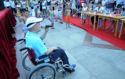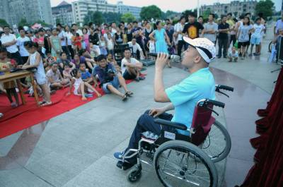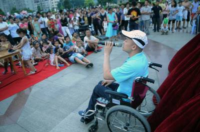轮椅上的一首歌7月31日,轮椅上的何玉美,在舞台下面清唱一首刘德华的《今天》,感动了现场观众。当日,何玉美参加了在襄樊市南湖广场举办的湖北省第二届网络歌手大赛海选,并与其他九名选手一起成功晋级。谢勇摄