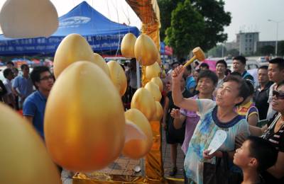 砸金蛋7月31日,一批”准车主”在襄樊市胜利街边抡锤砸金蛋碰运气。当日,旺前集团在此处开展售车活动,并为订购车辆的客户准备了一场砸金蛋游戏,作为购车回馈,吸引了不少市民观看。谢勇摄
