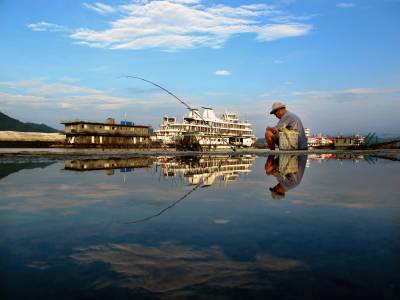 8月2日早上,宜昌天空放晴,经过长时间雨水的”洗礼”,晴好的天空深蓝可人,随着长江洪峰的远去,数日前被洪水淹没的江滩又重新出现,清晨,一老汉坐在江边安逸的垂钓,享受风雨过后的安宁。记者刘曙松摄