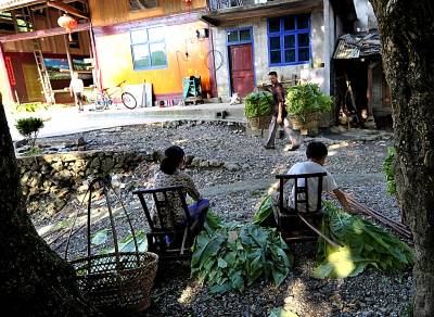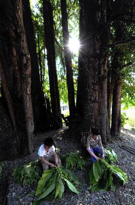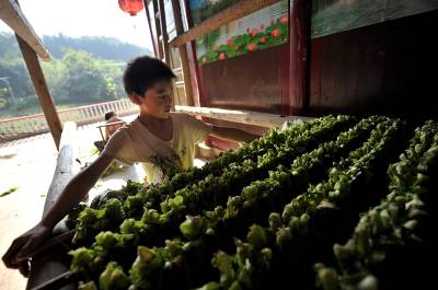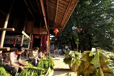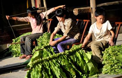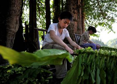 3日,宣恩县珠山镇茅坝塘村,几名放暑假的农家孩子在往竹杆上捆束等待烤制的烟叶,然后一杆杆地送进烤房进行烤制。孩子们说:这样能帮助父母减轻劳动负担,能为自己挣得上学的伙食费,还能体验父母劳动的艰辛。烟叶是宣恩农村农民致富的主导产业,每年为当地农村提供1.4亿元以上的收入。而作为农民的孩子,暑假期间除了完成暑假作业,力所能及地帮助父母收获烟叶是山里孩子署期的”必修课。本报视界网宋文摄