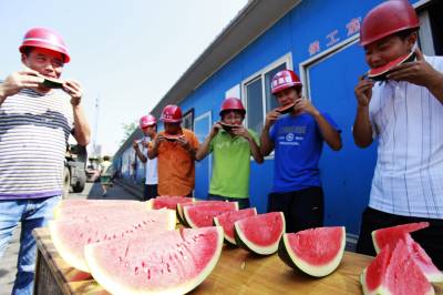 > 一线工人吃西瓜