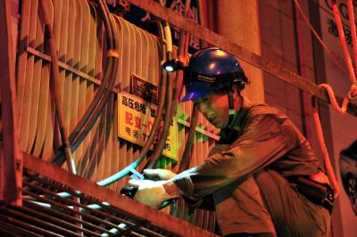 2010年8月3日,湖北省宜昌市最高气温达到38度。当日傍晚7点,宜昌市夷陵区供电公司启动”迎峰度夏安全大巡查”活动,30名员工分成6个专班,对供电设备及线路进行巡查和负荷测试,为迎峰度夏期间电网安全可靠供电提供有力保障。本报视界网张国荣摄