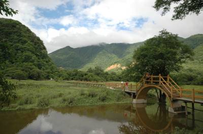 大九湖国家湿地公园位于湖北神农架西南边陲的渝鄂交界处南北长约15公里,东西宽约3公里,被称为”神农江南”。大九湖四周高山环绕,最高峰2800米,形成一道天然屏障。在东西有九个大山梁,梁上森林密布,气势雄伟。山梁间九条小溪犹如九条玉带从云雾中飘舞下来。在这高山平原上也恰好有九个湖泊鳞光闪闪。一山之隔的小九湖面积为5000亩,一条小溪连串着九个小湖泊。大九湖,小九湖由此而得名。大九湖西通四川,北通陕西,南达巴东与长江三峡相接,是连通川、鄂、陕交通的中转站。大九湖国家湿地公园海拔1730米,属于亚热带地区不可多得的亚高山湿地类型,具有独特性和稀有性;其湿地生态系统包括亚高山草甸、泥炭藓沼泽、睡菜沼泽、苔草沼泽、香蒲沼泽以及河渠水塘等类型;该湿地泥炭层最大厚度达35米,表明该区域曾经是发育良好的泥炭沼泽湿地神农架是全球200个重点生态区之一。大九湖国家湿地公园的自然景观丰富、独特,如春天有盛开的高山杜鹃花、夏天发育着茂密的水草、秋季红叶遍山、冬季则是高山雪景等。