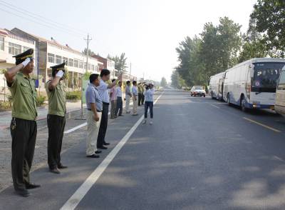107国道是贯穿我国南北的公路运输大通道,也是孝感市干线公路网的主骨架。近年来,随着该市经济的快速发展,该路段交通流量大幅攀升,导致路面病害不断加剧,安全隐患增多。2009年,总投资1.02亿元的107国道孝昌松林湾至孝南南大市场改造工程正式动。经过18个月的施工,这条路基宽14米,路面宽12米,全长48.07公里的二级公路改造项目全面完工。图为8月4日上午,相关部门领导在107国道孝昌段完工现场。宋俊初曾献峰摄