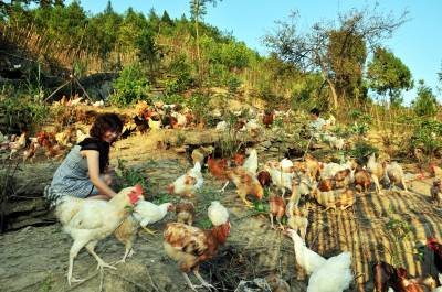 巴东女大学生向莉深山创业年增收20余万元(图)8月3日,女大学生向莉(左)正在与母亲喂养本地土鸡。几年前,巴东县官渡口镇魏家淌村女青年向莉大学毕业后,主动放弃留在大都市里工作的机会,回到家乡投资办起了七彩山鸡养殖场。今年年初,她又投资10万余元,把山围起来,办起了本地土鸡散养场,在当地政府及妇联、扶贫、计划生育协会的共同帮助和关心下,她的两项之和总收入逾26万元。(视界网签约摄影师梁勇摄)
