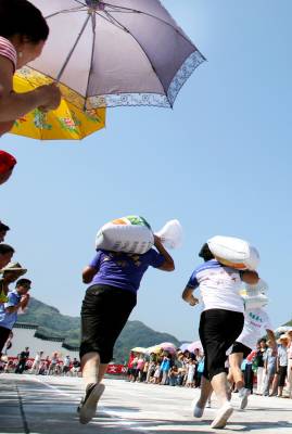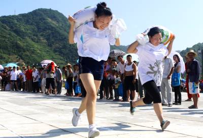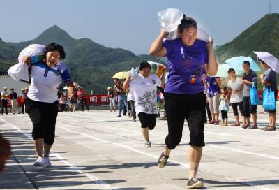 ”我们村民喜欢这样的运动会!” 8月4日,竹山县农民运动会在上庸镇中学广场举行。南坝村村民谭顺东说,”我们村民喜欢这样的运动会!因为一家老小都有机会当运动员”。为丰富活跃农民群众精神文化生活,近年来,竹山县文化部门坚持贴近群众生活实际,充分利用农闲、节日时间,遵循业余自愿、形式多样、健康有益的原则,采取以集镇、村组、农村机关为单位,开展球类、棋牌类、劳动技能类等形式多样的比赛活动,使全县参加全民建身运动人数达18万人,占全县总人口的40%,该县的秦古镇还被授予”湖北省首批特色体育乡镇”和”全国先进体育乡镇”。