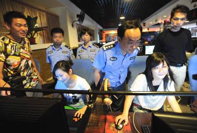 4日,干警们正在网吧检查第二代居民身份证刷卡上网制度落实情况。荆州市公安局网监支队认真执行公安部关于实名制上网的指示精神,督促指导全市1100多家网吧及时进行整改,为创造网络安全奠定稳固的基础。(记者杨平见习记者孙文摄)
