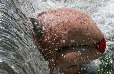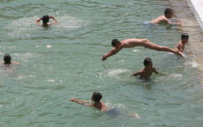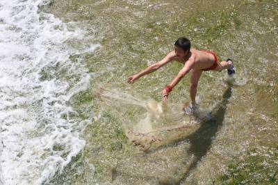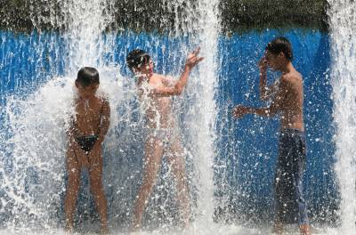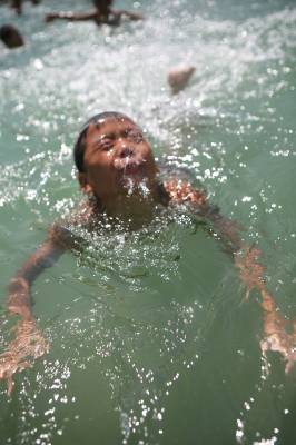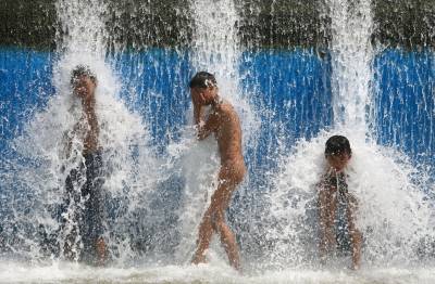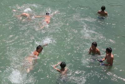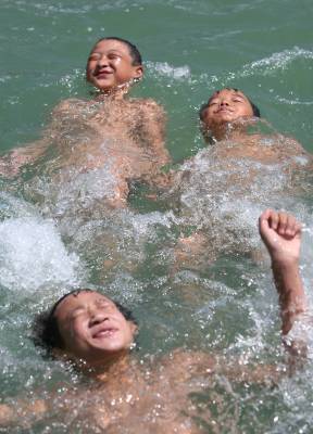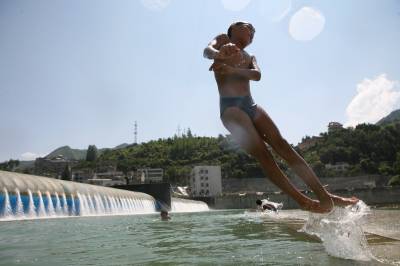 8月4日,保康县清溪河,孩子们在水中冲凉。据保康县气象部门监测,今日最高气温达40℃。